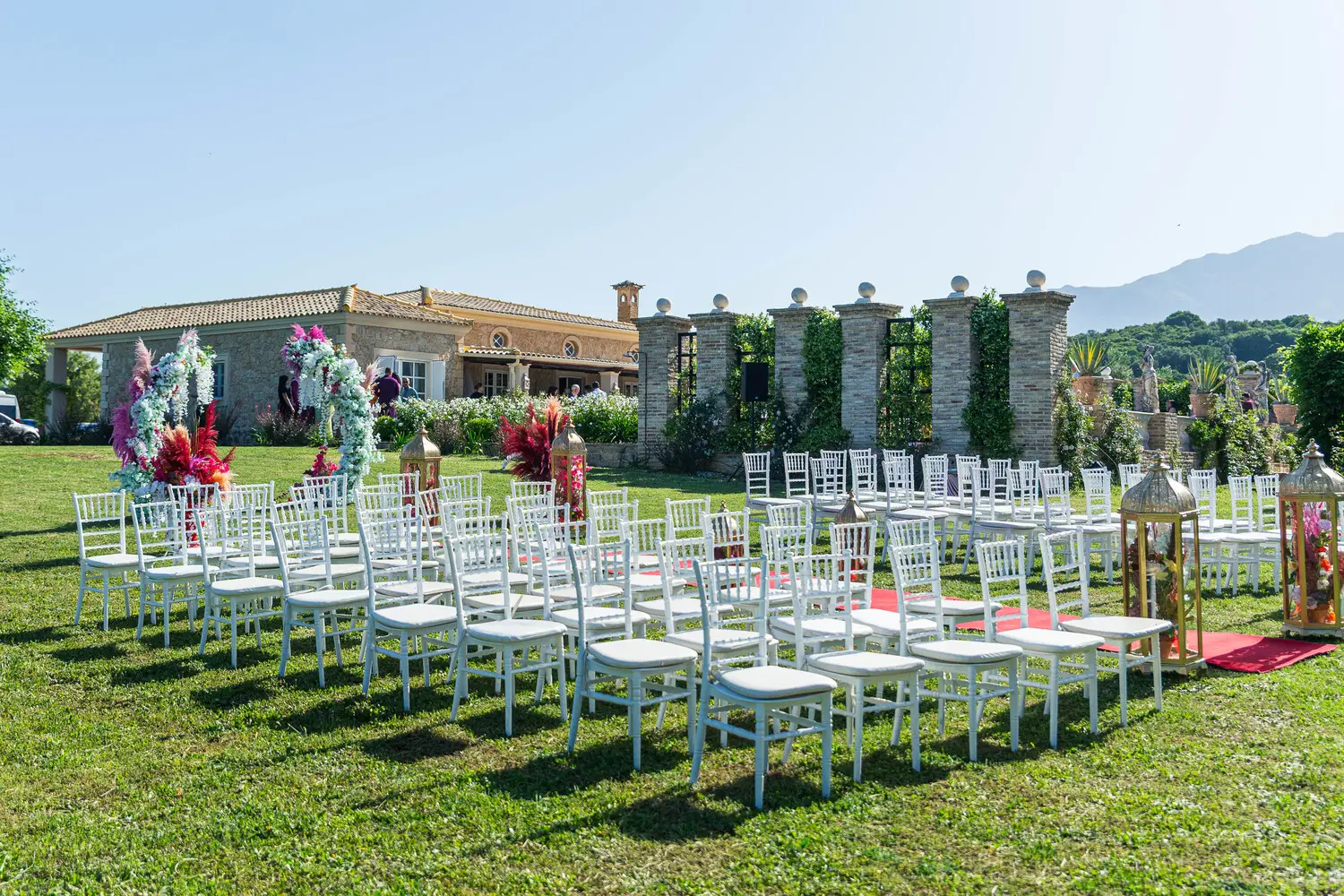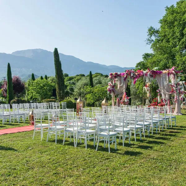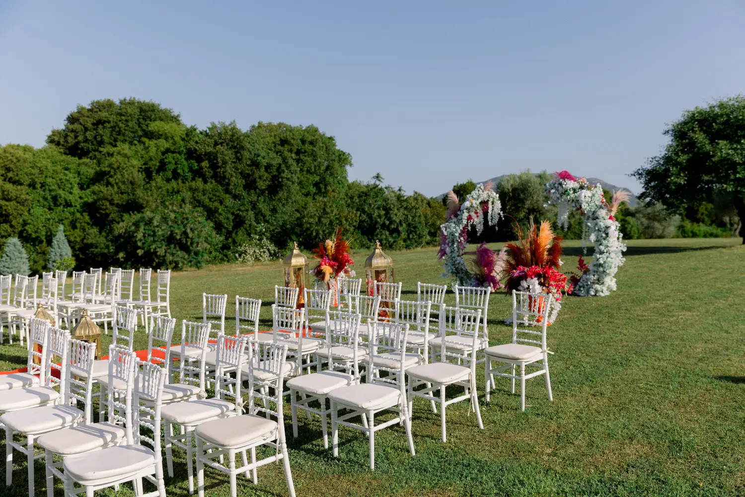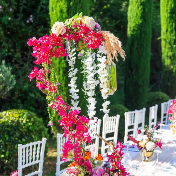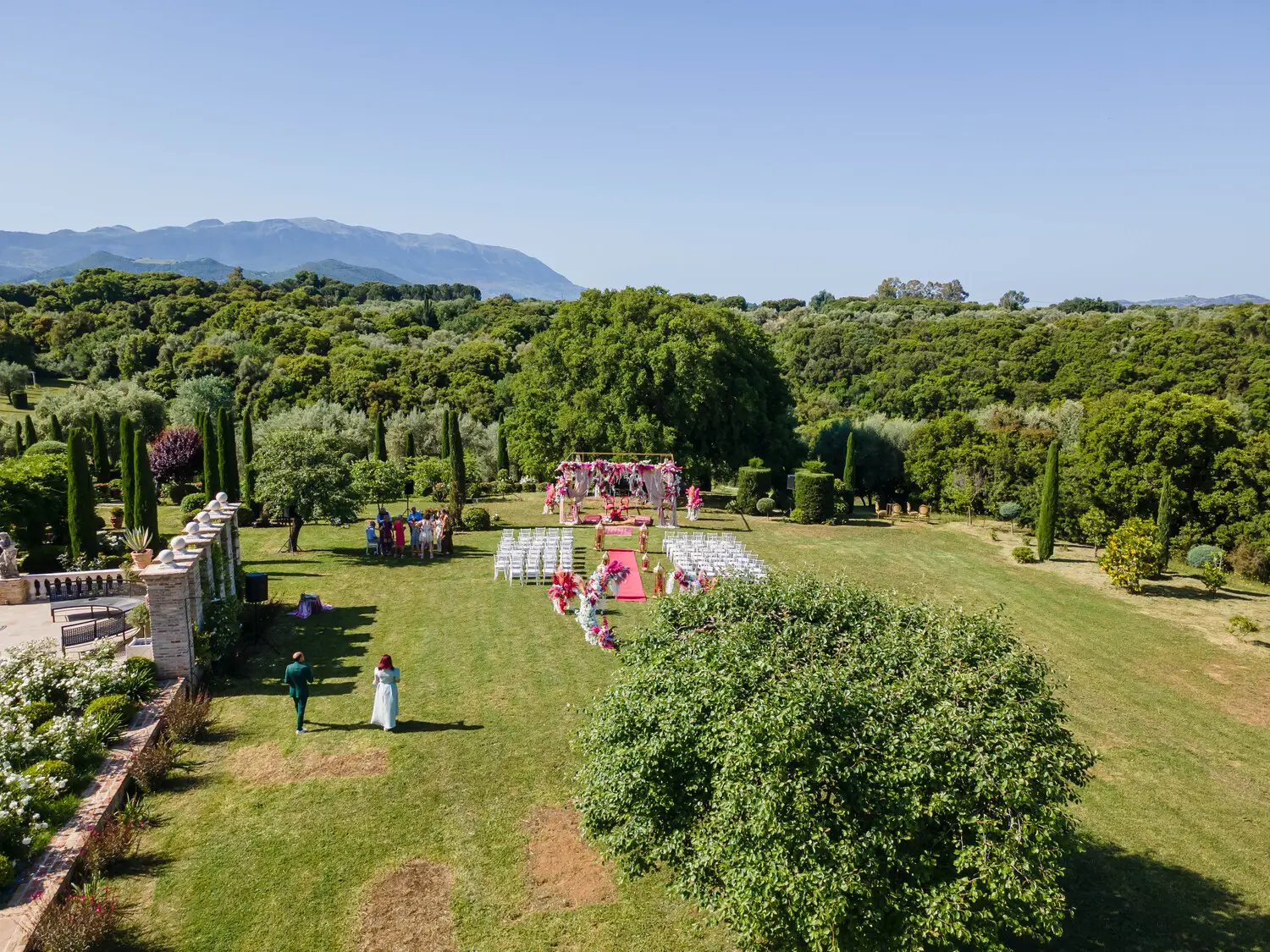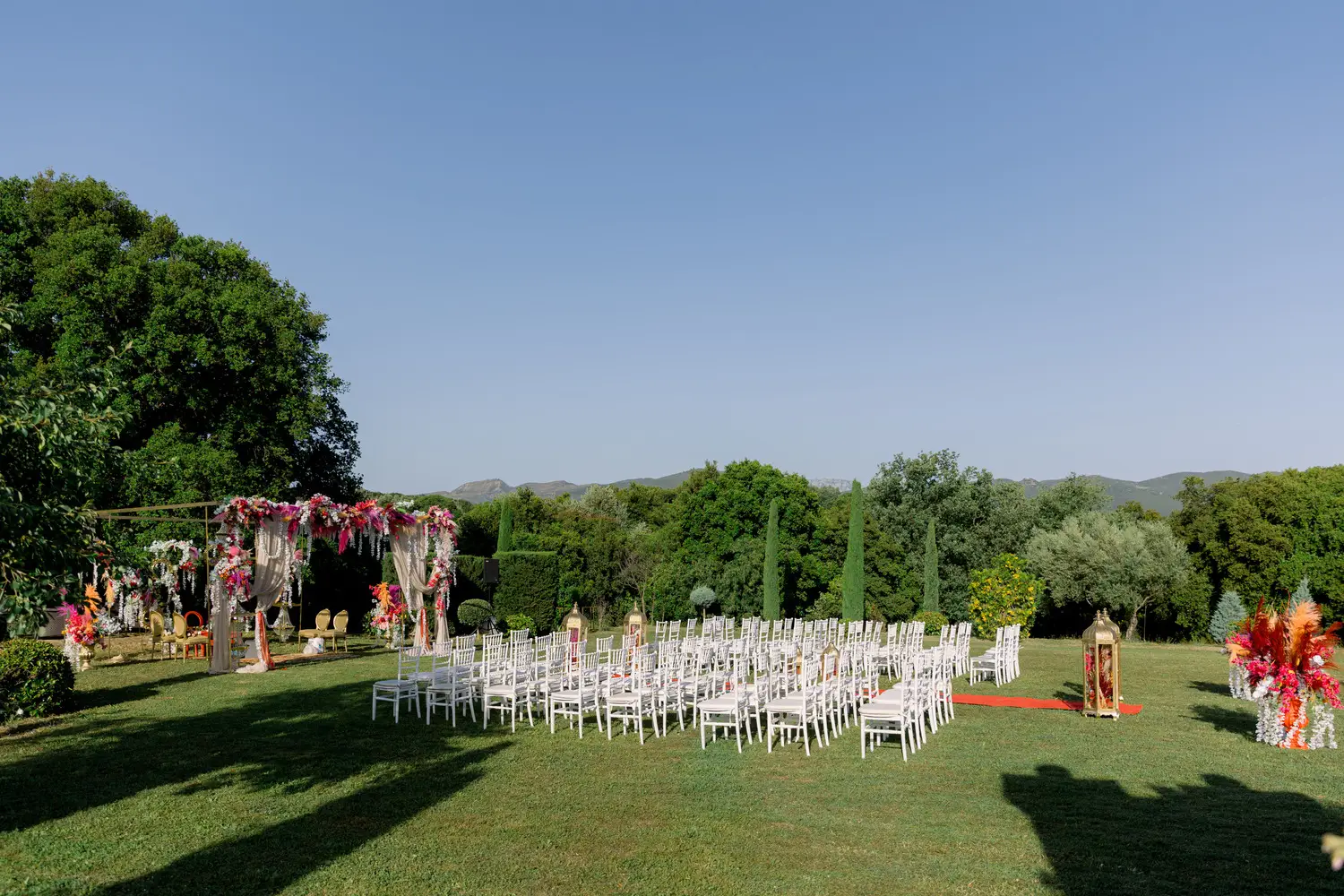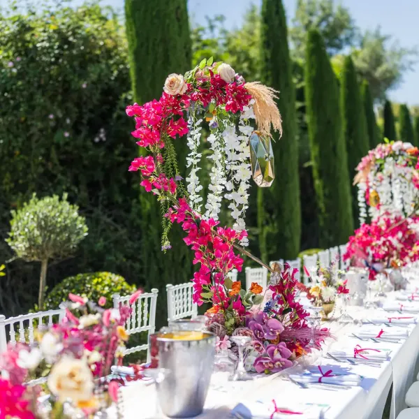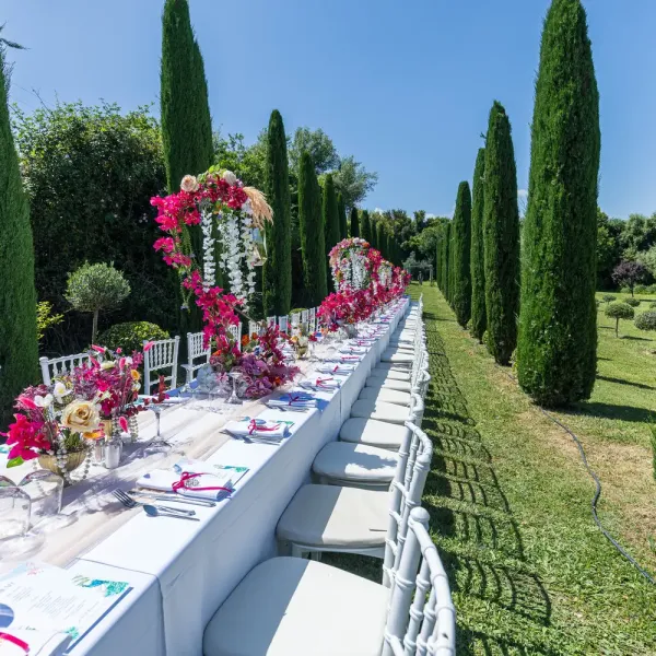 Our villa was transformed with vibrant colors and refined floral artistry, creating an authentic Hindu wedding atmosphere. Traditional symbolic Indian elements were thoughtfully incorporated, harmonizing with the natural Mediterranean surroundings. The lush greenery and breathtaking views provided a spectacular backdrop for the sacred ceremonies.