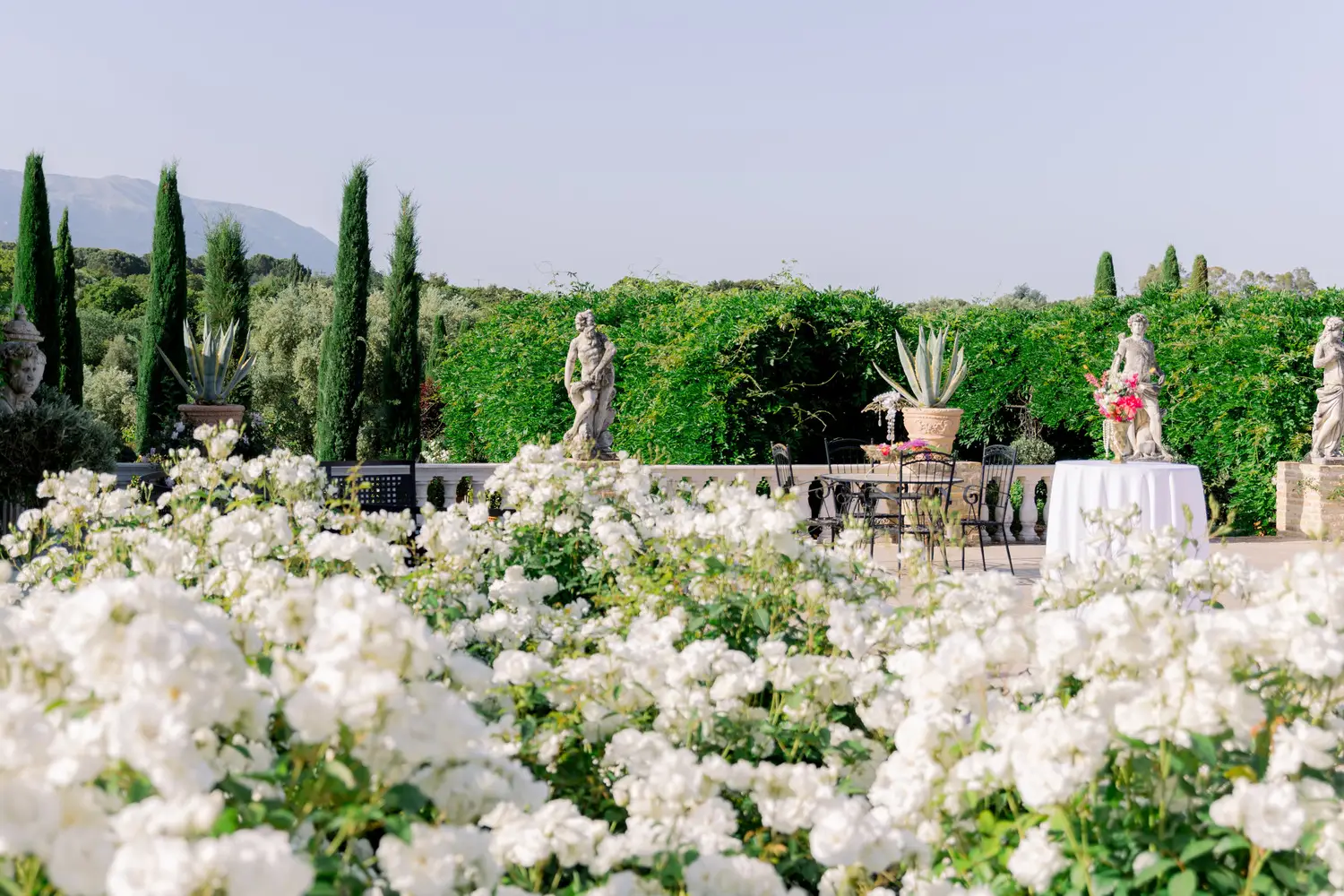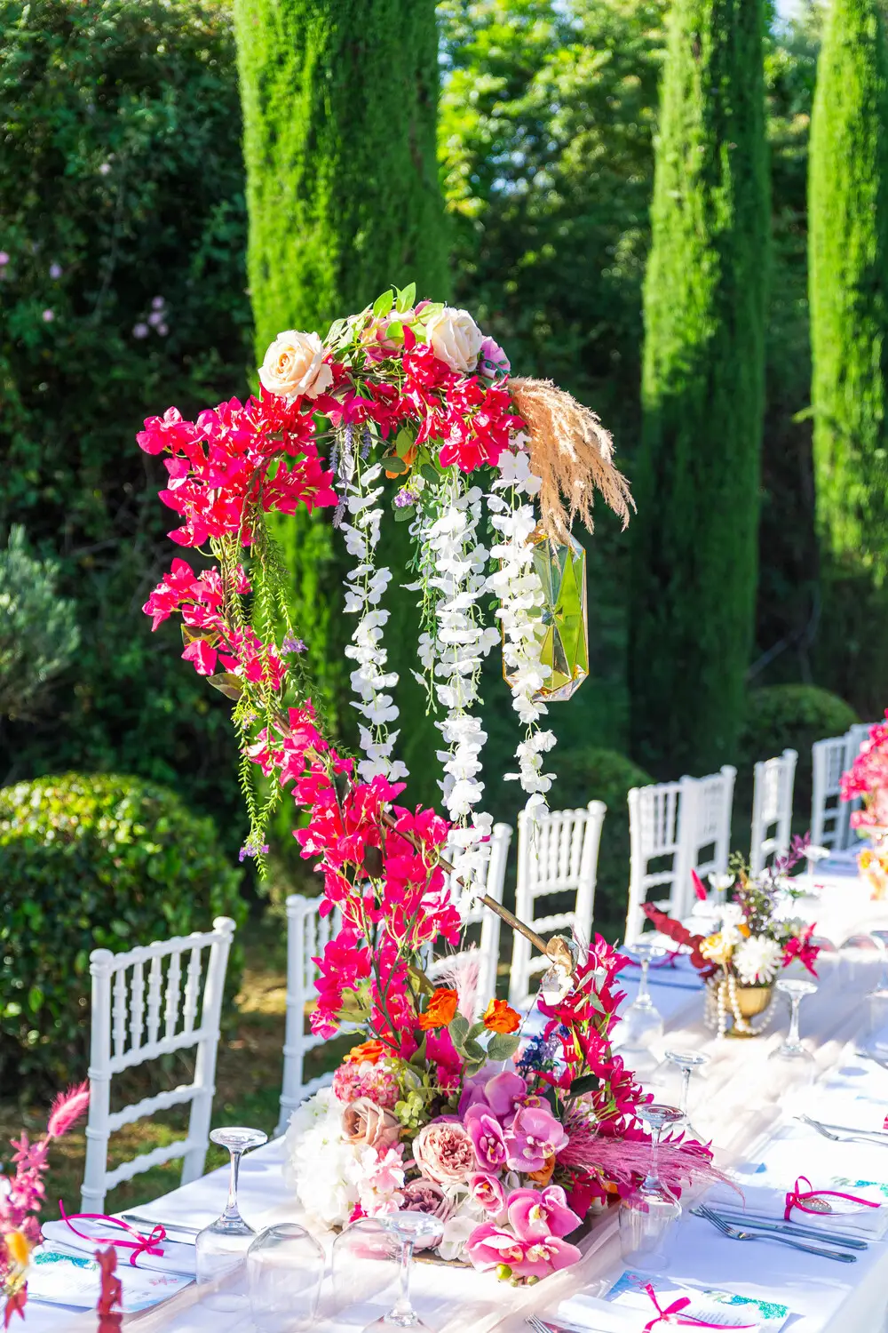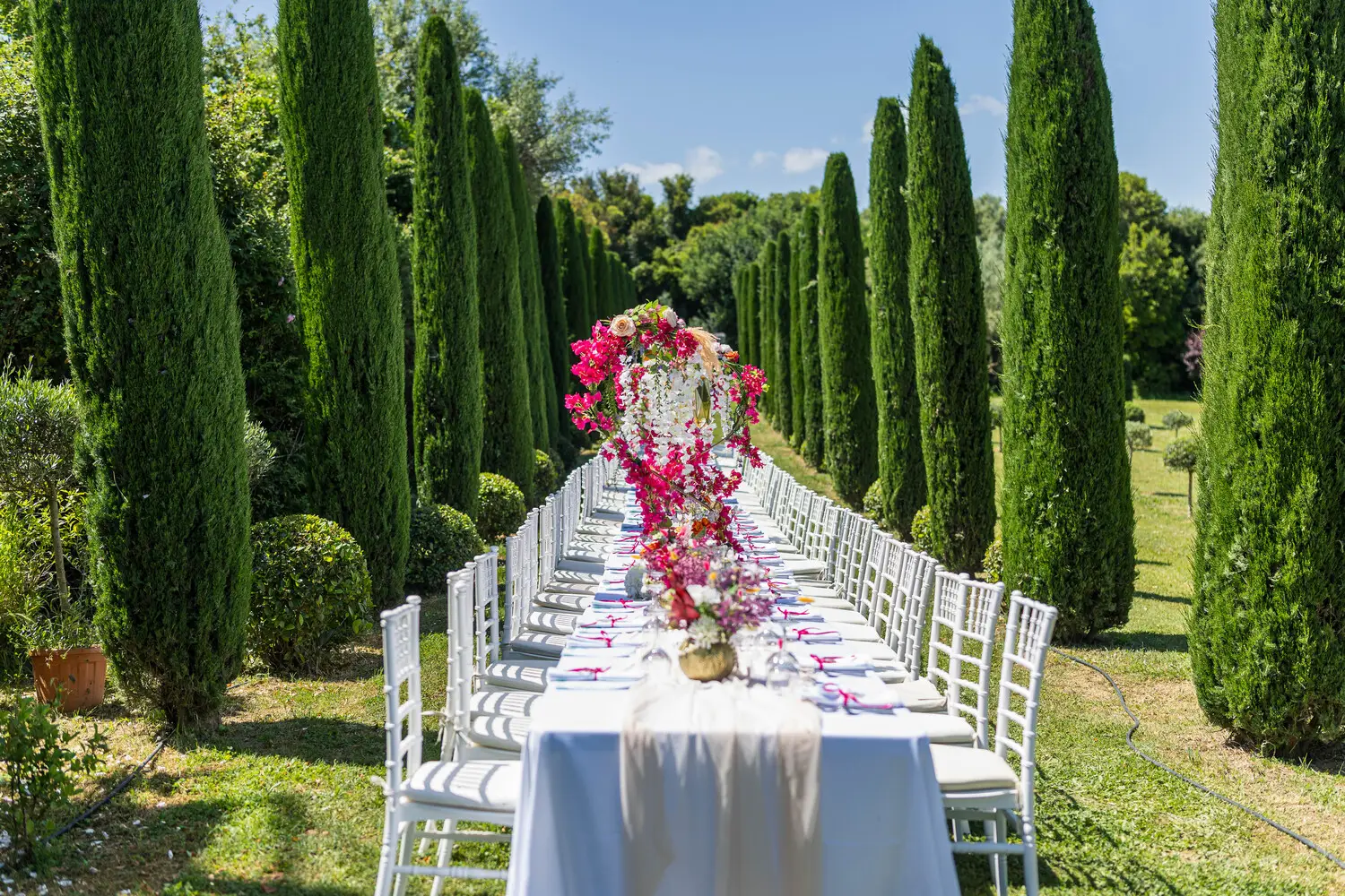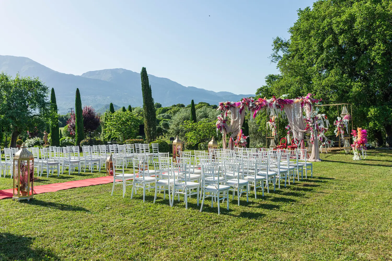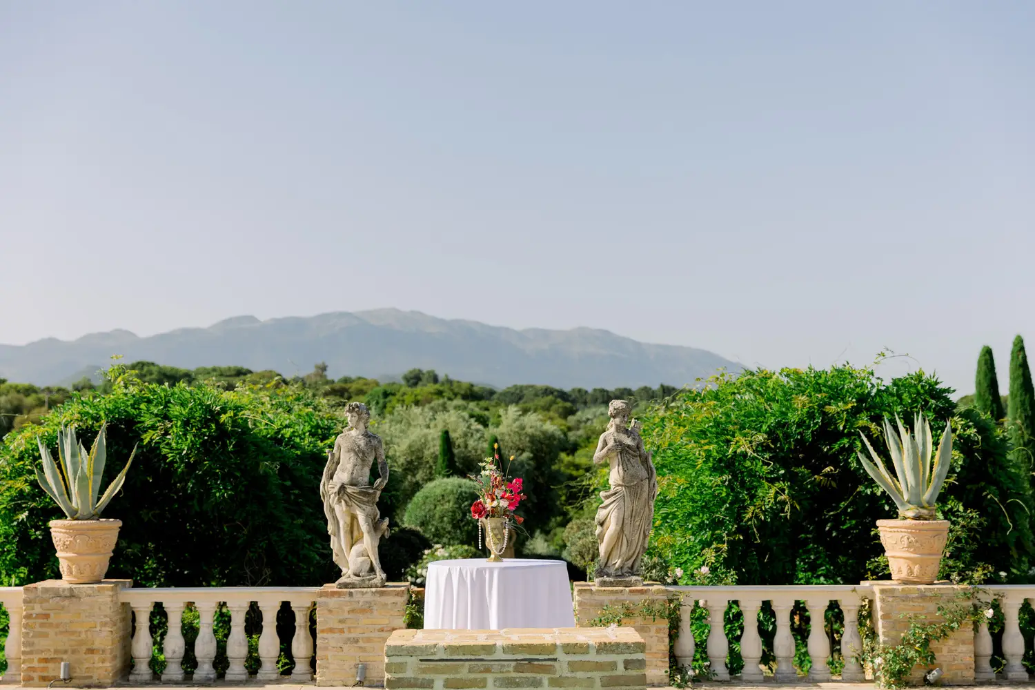 Our villa was transformed with vibrant colors and refined floral artistry, creating an authentic Hindu wedding atmosphere. Traditional symbolic Indian elements were thoughtfully incorporated, harmonizing with the natural Mediterranean surroundings. The lush greenery and breathtaking views provided a spectacular backdrop for the sacred ceremonies.
