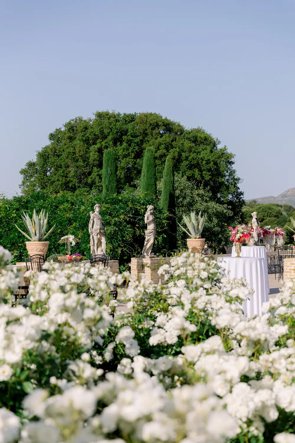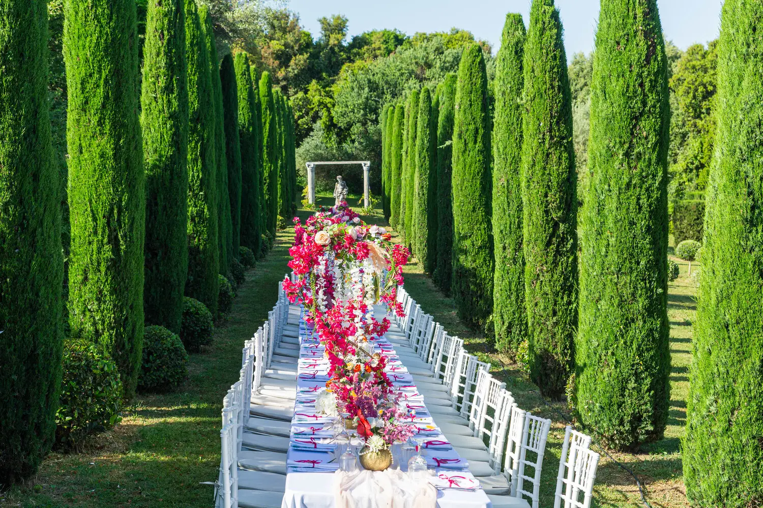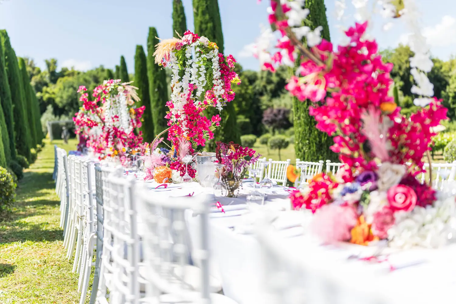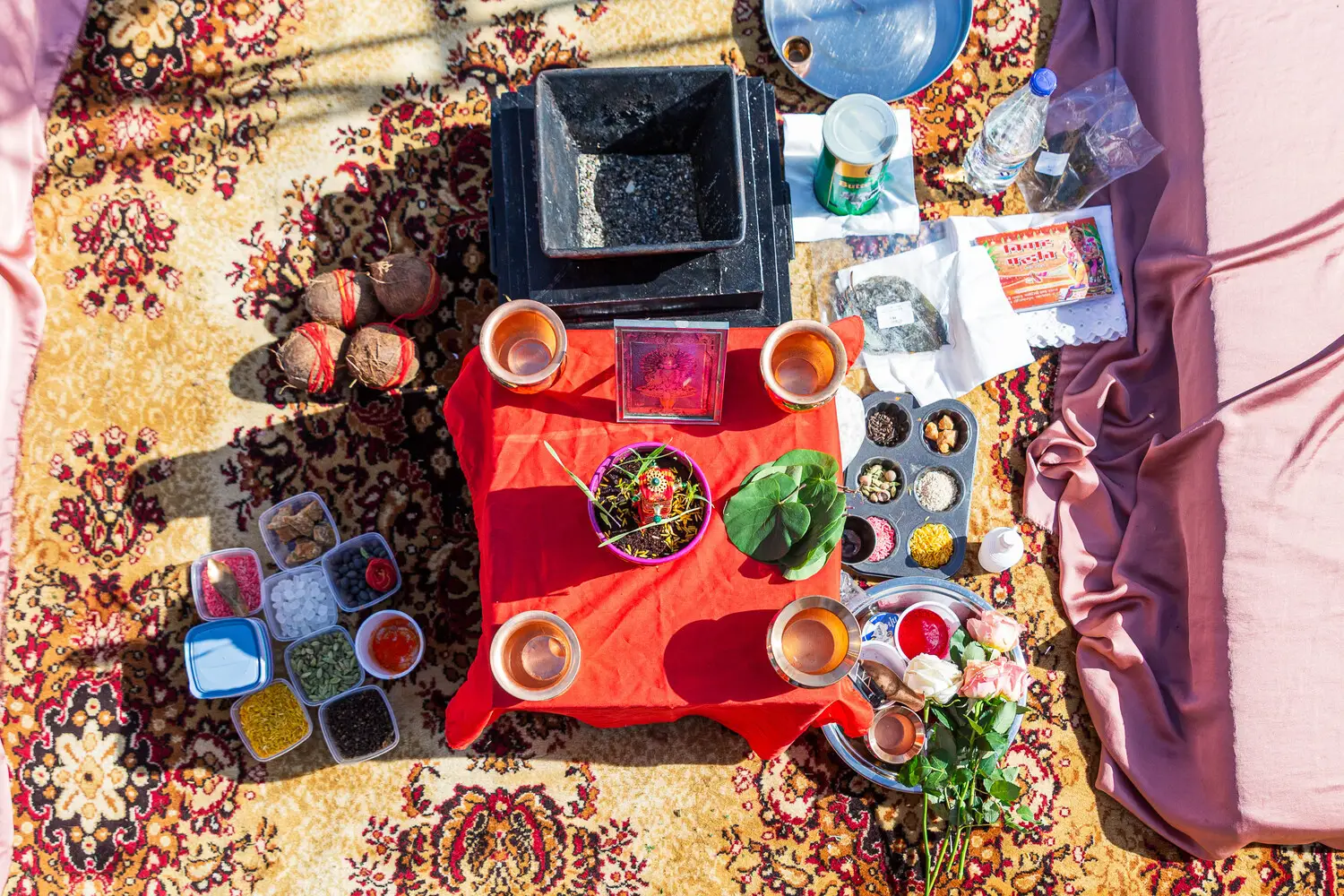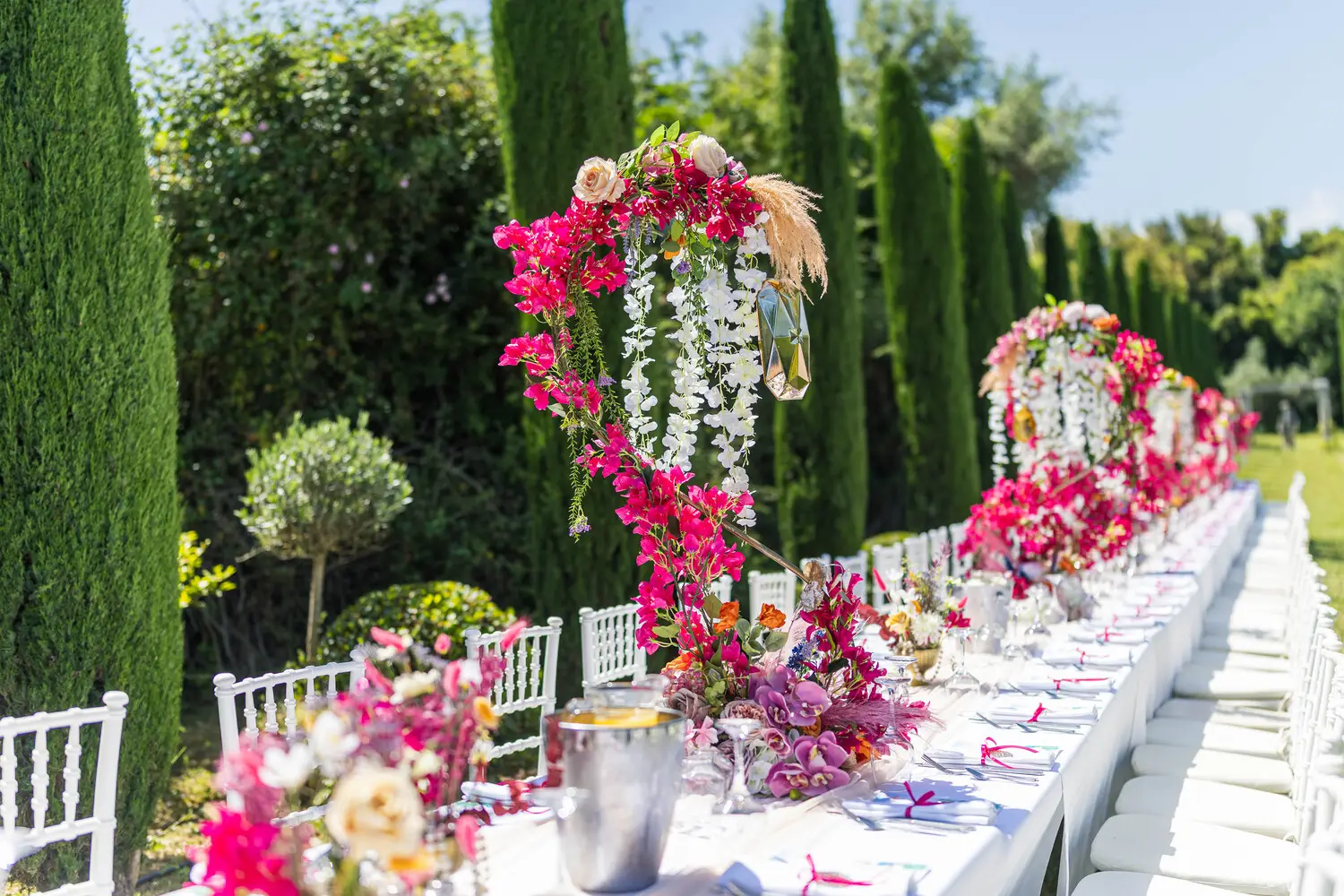 Our villa was transformed with vibrant colors and refined floral artistry, creating an authentic Hindu wedding atmosphere. Traditional symbolic Indian elements were thoughtfully incorporated, harmonizing with the natural Mediterranean surroundings. The lush greenery and breathtaking views provided a spectacular backdrop for the sacred ceremonies.